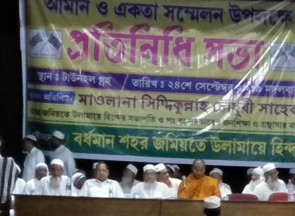 বর্ধমান: আজ বর্ধমান এর ঐতিহাসিক বংশগোপাল টাউন এ  বর্ধমান জেলা জমিযেত উলামায়ে  হিন্দের তরফ থেকে এক প্রতিনিধি সম্মেলন হয়ে গেলো । এই সম্মেলনে উপস্থিত ছিলেন রাজ্যের মন্ত্রী ও জমিযেত উলামায়ে হিন্দের রাজ্য সভাপতি মৌলনা সিদ্দিকুল্লা চৌধুরি ।তিনি এই সম্মেলনে বলেন জমিযেত সবাইকে নিয়ে এক সঙ্গে কাজ করতে চাই ।এন আর সির বিরুদ্ধে মতুয়া রা যে একসন কমিটি করেছে তাঁকে জমিযেত সমর্থন করবে ।জমিযেতের পুরানো ইতিহাস স্বাধীনতা আন্দলনে জমিযেতের ভুমিকা নিয়ে ব্যক্ষা করেন সিদ্দিকুল্লা চৌধুরী । তিনি বলছেন ভারত বর্ষের অন্যান্য অংশের মানুষের মত এই রাজ্যের মানুষ রা সঙ্কিত । জমিযেতের তরফ থেকে মানুষকে সচেতন করা হচ্ছে । এন আর সি হলে কারা ভারতীয় নাগরিক থাকবেন আর কারা বাদ যাবেন সেই নিয়ে জমিযেত সাধারন মানুষকে সচেতন করবে ।রাজ্য সরকারের প্রশংসা করে মানুষের পাশে থাকার বার্তা দেন ।এই অনুষ্ঠানে আরো অনেক বিশিষ্ট মানুষ উপস্থিত ছিলেন । বৌদ্ধ ধর্মের অরুণ জয়তী ভিক্ষু,সাহিত্যক পার্থ সেনগুপ্ত,কোলকাতা হাইকোর্টের প্রাক্তন বিচার পতি নুরে আলম চৌধুরী,জমিযেত এর রাজ্জ্য কমিটির সদস্য আব্দুস সালাম রহিমি ও রাজ্য সম্পাদক   মুফতি আব্দুস সালাম সহ জেলা জমিযেতের কর্তা সহ অগুনিৎ কর্মী রা উপস্থিত ছিলেন ।কর্মীদের উতসাহ উদ্দীপনা ছিলো  চোখে পড়ার মত ।