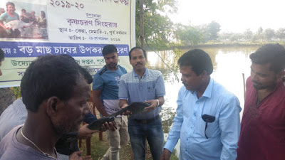সেখ সামসুদ্দিনঃ ২০১৯-২০ বর্ষের বড় জলাশয়ে বড় মাছ চাষ প্রকল্প আজ মেমারির ১ ব্লকের নিমো ২ গ্রাম পঞ্চায়েতের অধীন কেন্না গ্রামের একটি বড় পুকুরে মাছের চারা ছাড়া হয় বেনিফিশিয়ারির নাম কৃষ্ণ চরণ সিংহ রায়।