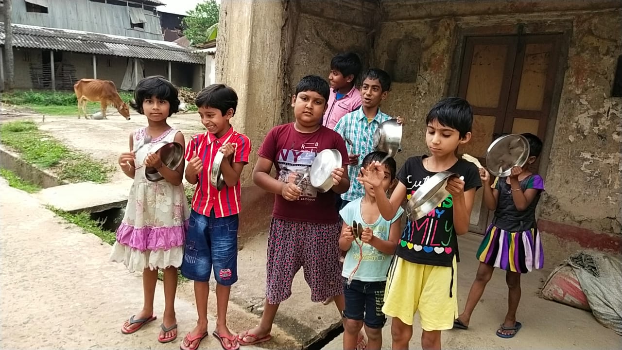 কৃষ্ণ সাহা ( বুজরুকদিঘি ) :- পাঁচটা বাজতেই শঙ্খধ্বনি ও বাজনার মাধ্যমে শুরু হলো অভিনন্দন জানানোর পালা।পূর্ব বর্ধমান জেলার বুজরুকদিঘী গ্রামের পাড়ায় পাড়ায় সাধারণ মানুষ শঙ্খধ্বনি,হাততালি দিয়ে ও বাজনা বাজিয়ে সাধুবাদ জানালেন নিরন্তর সেবায় নিয়োজিত মানুষদের।ডাক্তার,নার্স,সাফাই কর্মী, বীর সেনাদল যাঁরা নিজেদের প্রাণের তোয়াক্কা না করে সমাজ সেবায় নিজেদের একাত্ম করে তুলেছেন।