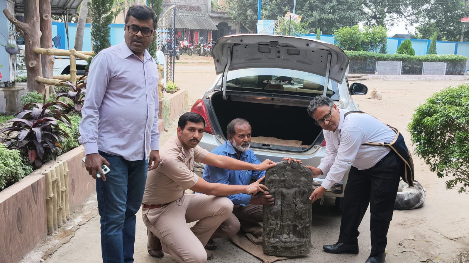 রায়না থানার পুলিশ কর্তাদের কথায় জানা গিয়েছে,গত শনিবার রায়নার হিজলনায় দামোদরে জাল ফেলে মাছ ধরছিলেন স্থানীয় জেলেরা। তাদেরই জালে প্রাচীন মূর্তিটি আটকা পড়ে। এই খবর পেয়ে রায়না থানার পুলিশ রবিবার এলাকায় গিয়ে মূর্তিটি উদ্ধার করে। বর্ধমান বিশ্ববিদ্যালয়ের মিউজিয়াম কর্তৃপক্ষ সংরক্ষণের জন্য মূর্তিটি নিতে চেয়ে রায়না থানায় আবেদন জানায়।সেই আবেদন অনুযায়ী সোমবার মূর্তিটি বর্ধমান বিশ্ববিদ্যালয়ের মিউজিয়াম কর্তৃপক্ষের হাতে তুলে দেওয়া হয়েছে।