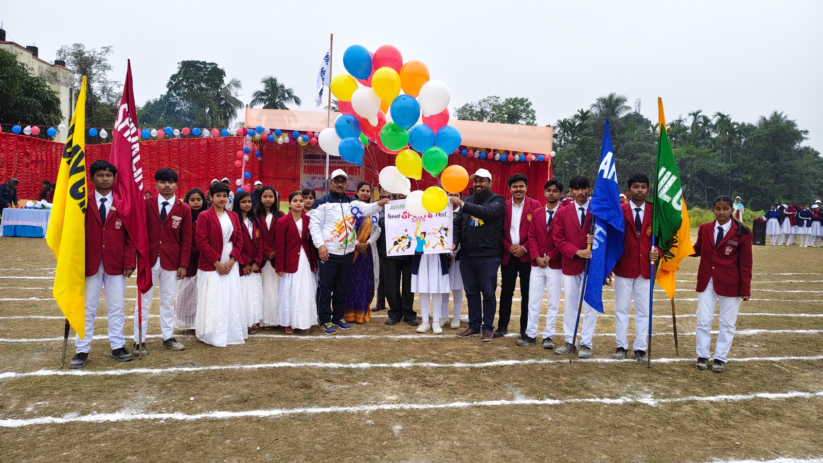 আজ ৩০শে ডিসেম্বর মঙ্গলবার বালুরঘাটে পিএম শ্রী জওহর নবোদয় বিদ্যালয়ের দুইদিনব্যাপী বার্ষিক ক্রীড়া অনুষ্ঠানের দ্বিতীয় দিন। গতকাল সকালে বিদ্যালয়ের নিজস্ব ময়দানে ছাত্রছাত্রীদের নিয়ে ক্রীড়া অনুষ্ঠান শুরু হয়েছে। আমন্ত্রিত অতিথিবর্গের উপস্থিতিতে গতকাল বিদ্যালয়ের পতাকা উত্তোলনের পাশাপাশি বেলুন উড়িয়ে ছাত্রছাত্রীদের শপথ বাক্য পাঠের মধ্যে দিয়ে ক্রীড়া অনুষ্ঠানের শুভ সূচনা হয়।