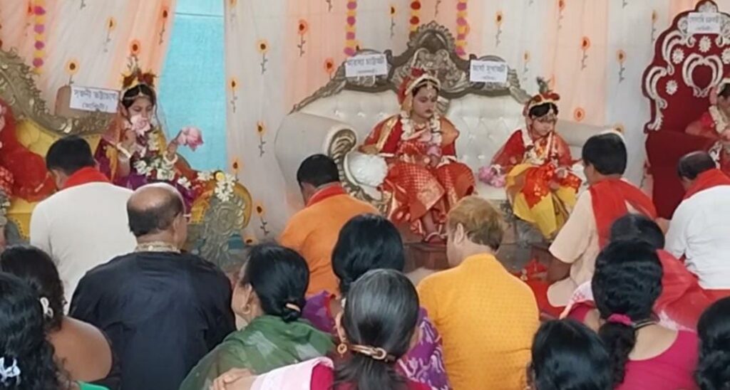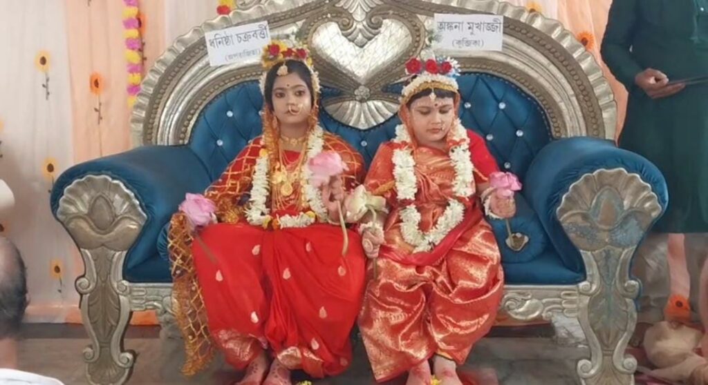 প্রদীপ চট্টোপাধ্যায়, বর্ধমান, ১ অক্টোবর: দেবী পক্ষের আজ মহানবমী।তাই রাজ আমলের রীতি মেনে বুধবার মহানবমী তিথিতে দেবীজ্ঞানে নয় কুমারীর পুজোহল বর্ধমানের সর্বমঙ্গলা মন্দিরে।নয়জন কুমারীকে দেবী দুর্গার নয়টি রুপে এখানে পুজো করা হয়ে থাকে।এই রুপ গুলির মধ্যে অন্যতম হল কালিকা মালিনী,সুভগা,কব্জিকা, কালসন্দর্ভা ও উমা। কুমারী পুজো দেখার জন্য ভক্তদের ভিড উপচে পড়লো সর্বমঙ্গলা মন্দিরে।