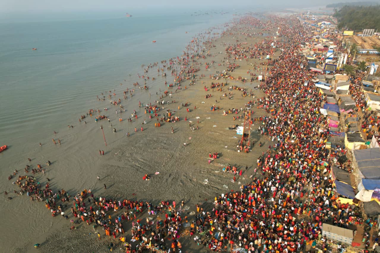 মকর সংক্রান্তিতে জন সমুদ্রে জন প্লাবন গঙ্গাসাগরে