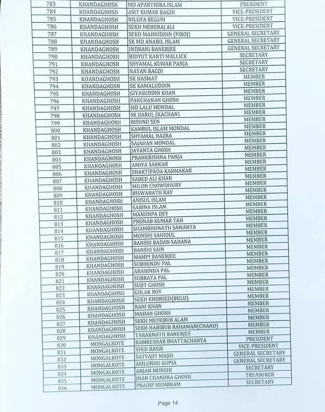 ২০২৬ বিধানসভা নির্বাচনের লক্ষ্যে সাংগঠনিক শক্তিবৃদ্ধি, খণ্ডঘোষ ব্লকে তৃণমূলের ব্লক ও অঞ্চল কমিটি প্রকাশ