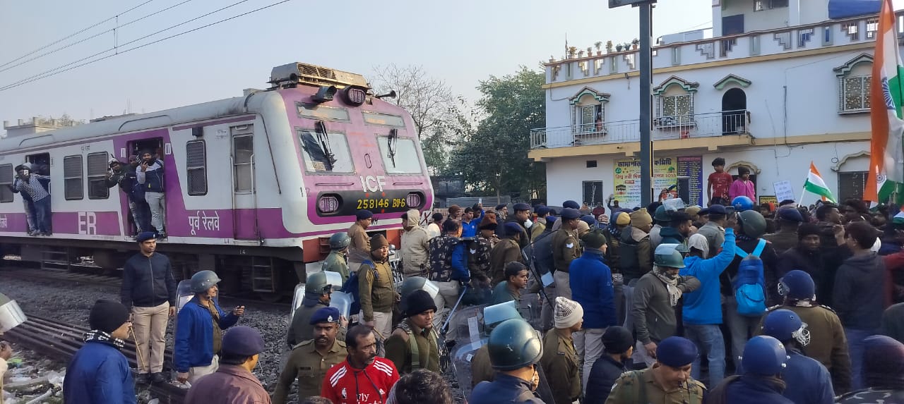 SIR এর নামে হয়রানি ও হেনস্তার অভিযোগ তুলে সমুদ্রগড়ে জাতীয় পতাকা হাতে নিয়ে রেল অবরোধ