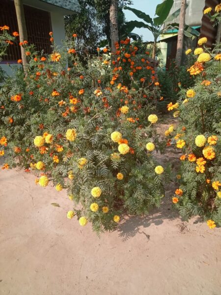 অবশেষে কয়েক বছর আগে এলাকার বেশ কয়েকজন কৃষক গাঁদা ফুল চাষ করার সিদ্ধান্ত নেন। প্রথমে স্বল্প আয়তনের জমিতে তারা শুরু করেন এই চাষ। নদিয়ার রানাঘাট থেকে গাঁদা ফুলের চারা নিয়ে আসেন এখানকার কৃষকরা। আশ্বিন মাসে জমি তৈরি করে চারা বোনা হয়। সব মিলিয়ে খুব বেশি হলে এক বিঘে আয়তনের জমিতে ১৩ হাজার টাকা খরচ হয়। ভালো ফলন হলে ফুল বিক্রি হয় দ্বিগুণ দামে। এতে লাভের হার অনেকটাই বেশি হয় ধান, গম, পাট বা ভুট্টা চাষের চাইতে। আর শীতকালে নানান অনুষ্ঠানে গাঁদা ফুলের চাহিদাও বেশি থাকে। গত ২ বছর পূর্বে চলতে থাকা করোনা মহামারীর কারনে ব্যবসায় মন্দা প্রভাব পড়লেও বর্তমানে তারা যথেষ্টই সাবলম্বী।