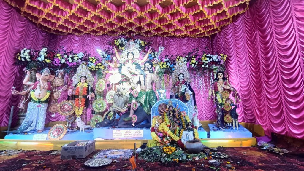 প্রতিমা নির্মাণ থেকে মহা উৎসবের প্রস্তুতি মহালয়ার দিন খুঁটি পূজোর মাধ্যমে শুরু হয় পূজার আনুষ্ঠানিক প্রস্তুতি। প্রতিমা গড়ার দায়িত্ব পড়ে মামুদপুর গ্রামের অভিজ্ঞ মৃৎশিল্পী পূর্ণচন্দ্র ঘোষের উপর। তার নিপুণ হাতের কারুকার্যে গড়া মনোমুগ্ধকর প্রতিমা গ্রামবাসীর হৃদয় জয় করে। মণ্ডপে সেই প্রতিমা প্রতিষ্ঠা করে দেবী আরাধনার মধ্য দিয়ে শুরু হয় দুর্গোৎসব।