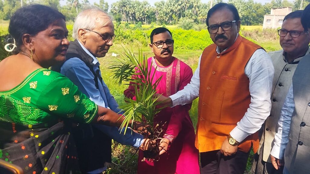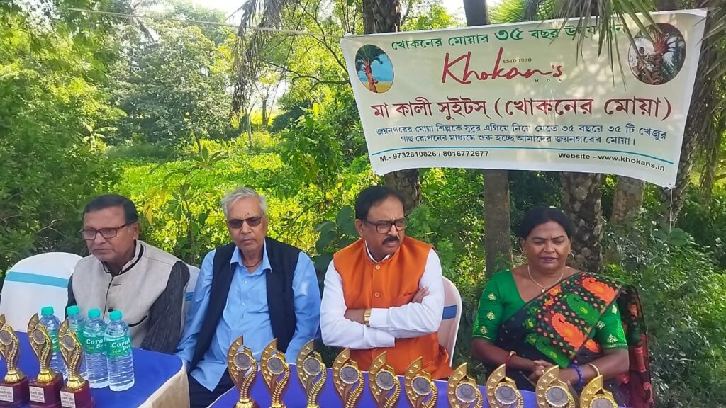 আর তার ফলস্বরুপ নলেন গুড়ের ভাঁড়ারে টান পড়েছে।আর তাই এবার সরকারের পাশাপাশি নড়েচড়ে বসেছে জয়নগরের মোয়া কারবারিরা।আর জয়নগরের প্রাচীন মোয়া ব্যবসায়ী খোকন দাস তার ব্যবসার ৩৫ বছরকে সামনে রেখে শনিবার জয়নগর বিধানসভার ফুটিগোদা গ্রাম পঞ্চায়েতের তুলসিঘাটা কাটা খালের পাশে ৩৫ টি খেজুর গাছ বসালেন।এদিন এই গাছ বসাতে এগিয়ে আসেন জয়নগরের বিধায়ক বিশ্বনাথ দাস।এই উপলক্ষে সেখানে একটি অনুষ্ঠানে উপস্থিত ছিলেন জয়নগরের বিধায়ক বিশ্বনাথ দাস,ফুটিগোদা গ্রাম পঞ্চায়েতের প্রধান রীণা মন্ডল,জয়নগর অবর স্কুল পরিদর্শক কৃষ্ণেন্দু ঘোষ, শিক্ষক কনক কান্তি ঘোষ,ভবানী সরকার,এদিনের অনুষ্ঠানে আয়োজক খোকন দাস, রাজেশ দাস সহ আরো অনেকে।