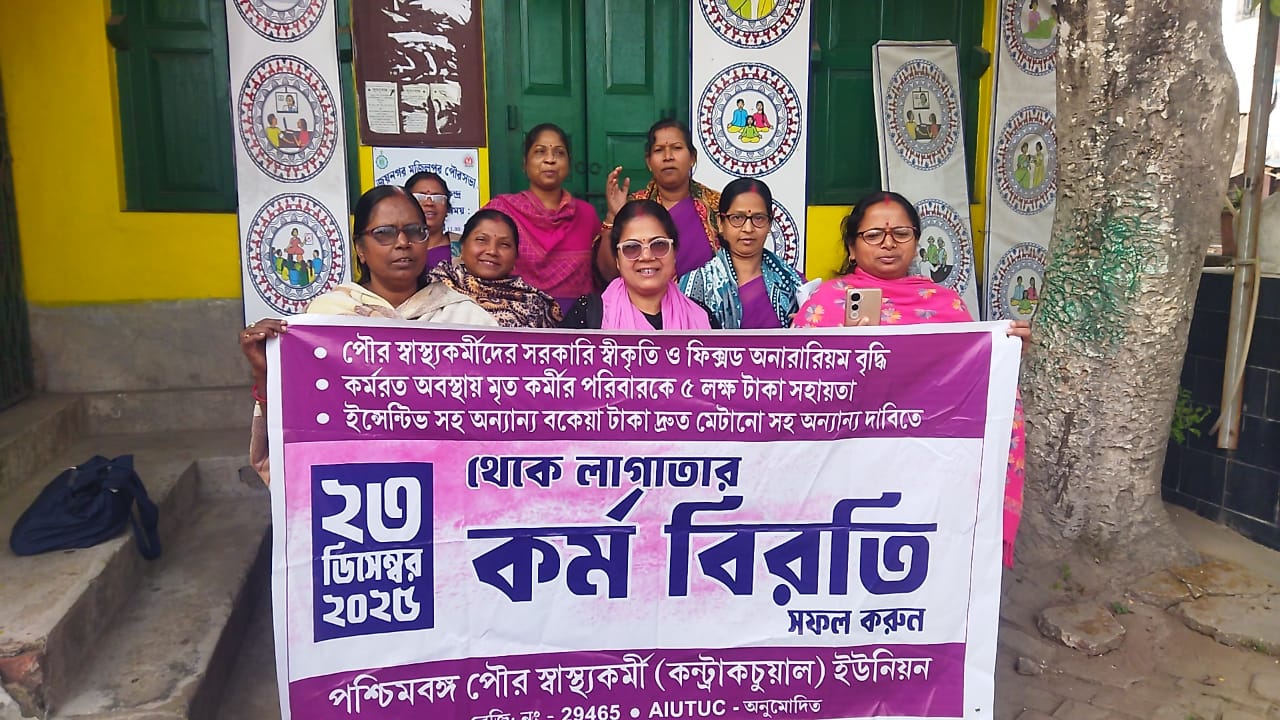 জয়নগর মজিলপুর পৌরসভার স্বাস্থ্য কেন্দ্রে কর্মবিরতিতে পৌর স্বাস্থ্য কর্মীরা