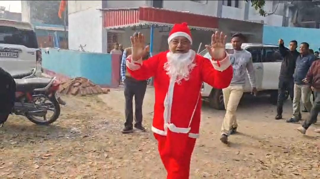 বড়দিনের সকালে শান্তা ক্লোজএর সাজে দুর্গাপুরের রাস্তায় মন্ত্রী