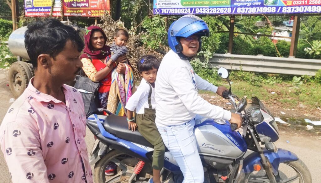 ঠিক সেই সময় লাগাতার আরামবাগ পোস্টে রামকৃষ্ণ সেতু সংক্রান্ত লাইভ কভারেজ করতে করতে ঘটনাটি চোখে পড়ে সাংবাদিক সুরজ আলী খানের। কোনো দ্বিধা না করে তিনি মানবিক ভূমিকা পালন করে নিজের বাইকে ওই মা ও দুই শিশুকে তুলে নিয়ে নিরাপদে পৌঁছে দেন আরামবাগ বাসস্ট্যান্ডে এবং তাদের গন্তব্যগামী বাস ধরতে সাহায্য করেন।