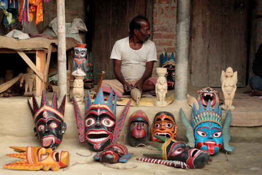 দক্ষিণ দিনাজপুর: দক্ষিণ দিনাজপুর জেলার কুশমণ্ডি ব্লকের মহিষবাথান এলাকার মুখাশিল্প রাজ্য সহ সমগ্র দেশ জুড়ে জনপ্রিয়। দিন দিন জনপ্রিয় মুখা শিল্পের চাহিদা বাড়ছে। জেলার এই কুশমন্ডি ব্লকের দেউল গ্রাম পঞ্চায়েতে অবস্থিত মহিষবাথান এলাকায়। বিগত কয়েক বছরে এই মুখা শিল্পের ওপর ভিত্তি করেই জীবন জীবিকা গড়ে উঠেছে নতুন করে বহু মানুষের।