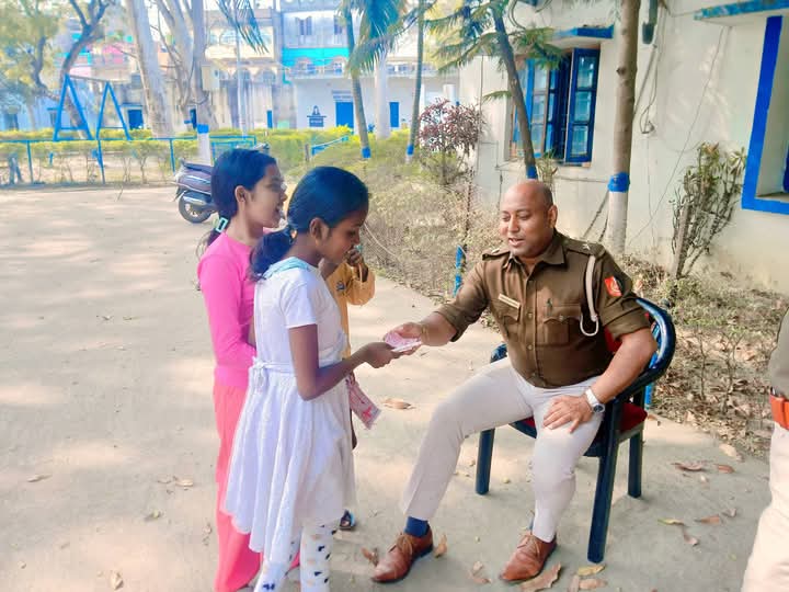 শিশুরা জানেই না—যাঁকে তারা আদর করে “পুলিশ কাকু” লিখেছে, তিনিই যে থানার আইসি! হাসিমুখে রসিদটি হাতে নিয়ে মুহূর্তেই আবেগে ভরে ওঠেন আইসি সৌরভ সেন। শিশুদের সরলতা, মধুর ব্যবহার আর নিষ্পাপ ভালোবাসা যেন মন ছুঁয়ে যায় সকলের। কোনো দ্বিধা না করে, হাসিমুখেই চাঁদা গ্রহণ করেন তিনি।